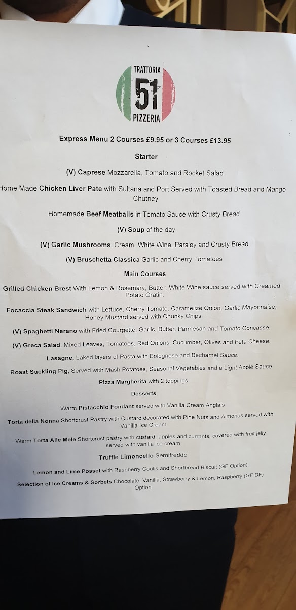 Trattoria 51 Menu